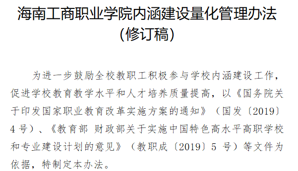 海南工商职业学院关于印发 《内涵建设量化管理办法》的通知
